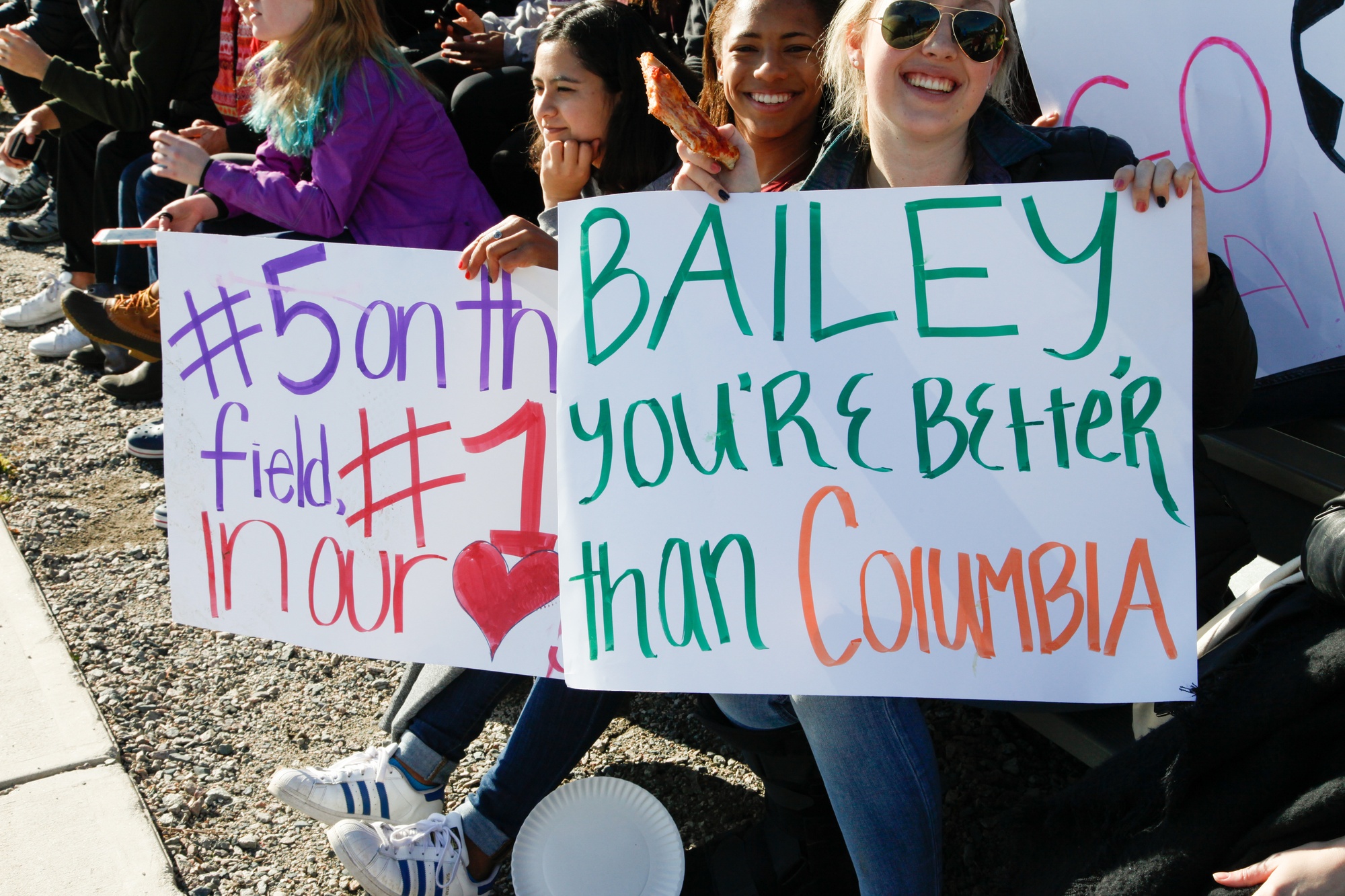 Many of the supporters cheering on the Soccer team were themselves student athletes. Members of the Women's Lacrosse team sat together on the side of Jordan Field, the playing field shared by the soccer and lacrosse programs.