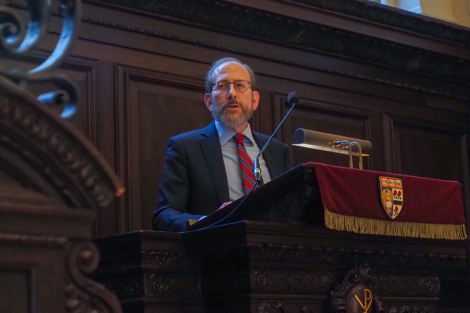 “When confusion and hurry and a host of other calamities threaten to overwhelm them,” Garber said from the pulpit during Morning Prayers, “it’s up to us, the beneficiaries of the greatness and endurance of institutions, to defend and protect them, to steady and ready them, so that they might continue to thrive.”