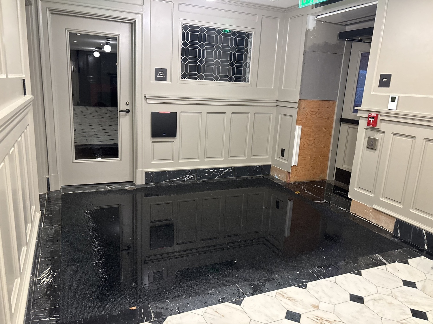 “It was just pouring water through the elevator shaft,” Kayla R. Reifel ’26 said. “I think it was pretty obvious that the elevator shaft wasn’t done yet, because there have been construction materials in there.”